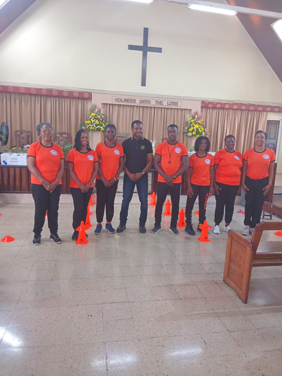 As team members, decked in their official exercise tops of burnt orange and black trimmings, began their demonstration warm-up, using various pieces of equipment, their captain, Baldon Francis, took the congregation on a brisk walk, explaining FFP’s genesis.
