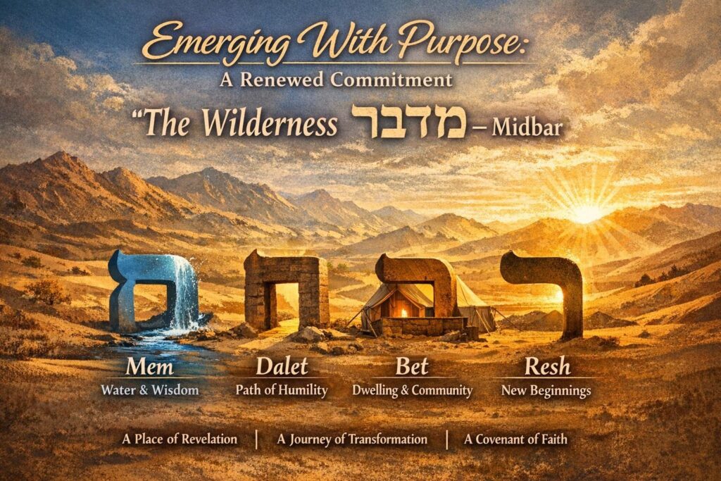Even the letters of the word tell a story. The first letter, mem, carries the idea of water—the symbol of wisdom and Torah. Jewish tradition says, “There is no water except Torah.” The wilderness therefore becomes the place where divine wisdom flows. The next letter, dalet, represents a door but is also linked with poverty and humility. Revelation requires emptiness; one must become humble enough to receive instruction. The third letter, bet, means house — the building of a people and a covenant community. Finally, resh signifies headship and beginning, the formation of leadership and destiny. Put together, the word suggests that through humility, divine instruction forms a people and prepares them for leadership.